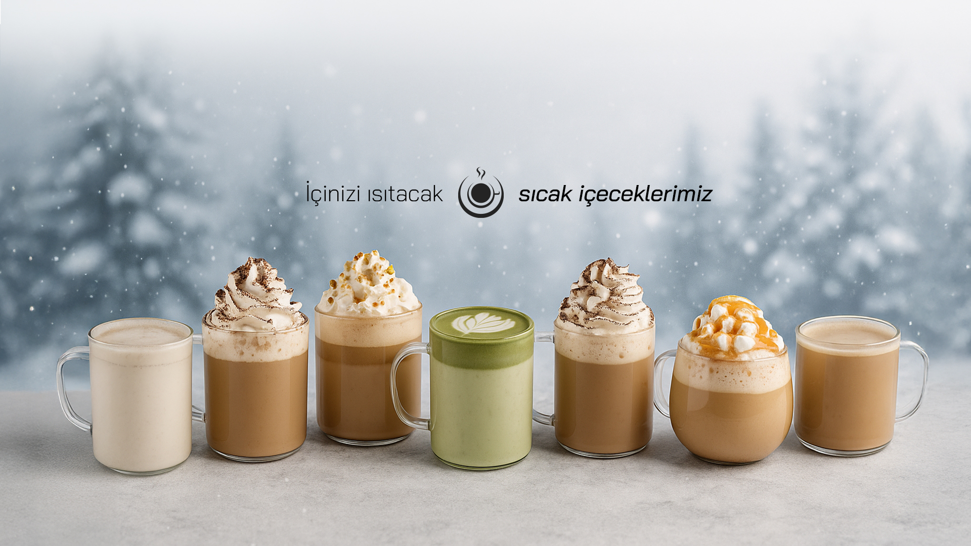 Espresso, latte, filtre kahveler ve serinletici soğuk içecekler arasından seçim yapabilirsiniz.