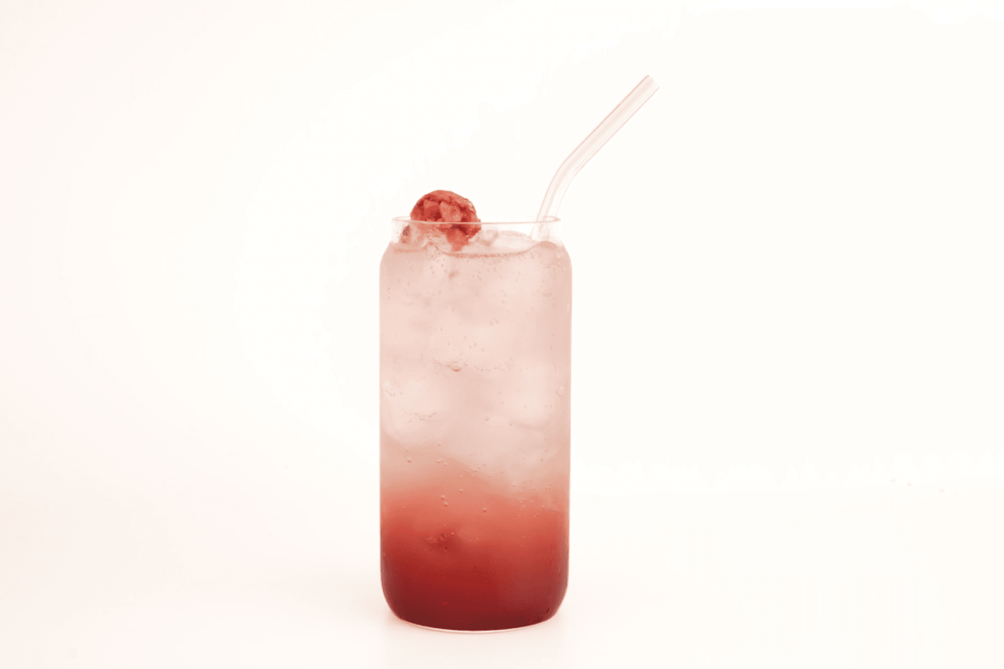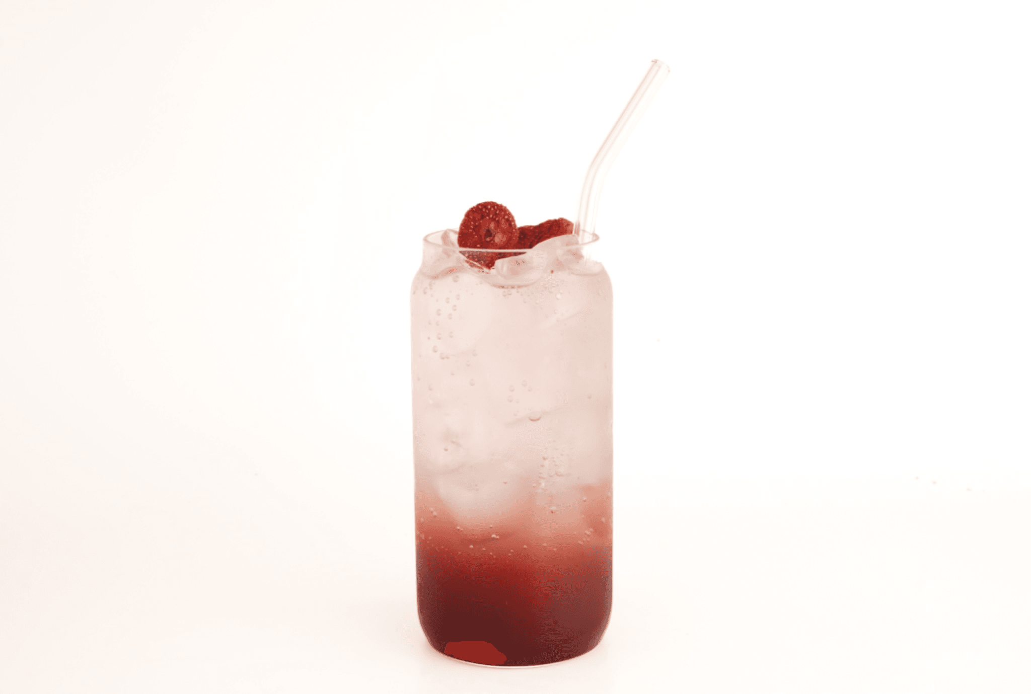 Yoğun kırmızı meyve püresi ve sodanın buluştuğu, kuru çileklerle süslenen meyve aromalı serinletici bir alternatif.