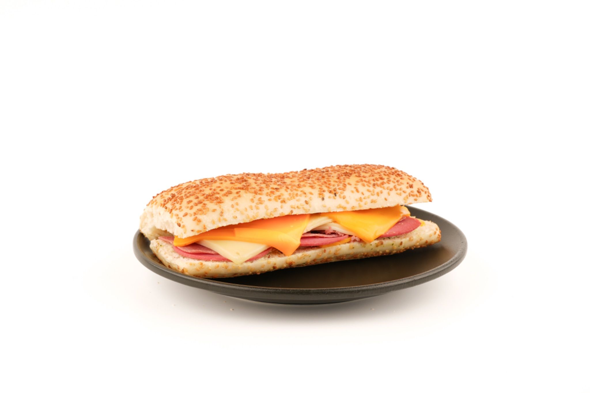 Susamlı ciabatta ekmeği arasında kaşar, cheddar, parmesan peynirleriyle birlikte dana salam ve sucuk; pesto ve İtalyan sosla lezzetini buluyor. Her lokmada damağa dolgun ve dengeli bir tat bırakıyor.