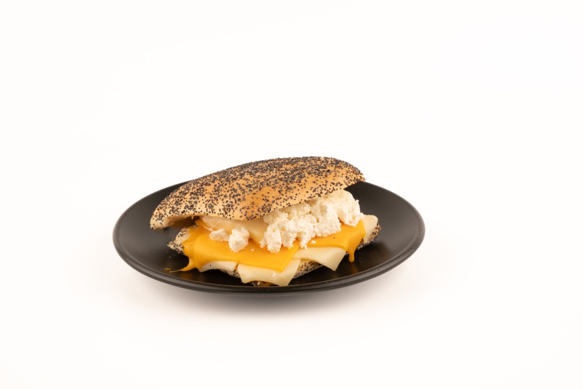 Haşhaşlı ciabatta ekmeği arasında dört çeşit peynirin dengeli birleşimiyle hazırlanan bu sandviç, doyurucu ve yumuşak bir tat profili sunar.