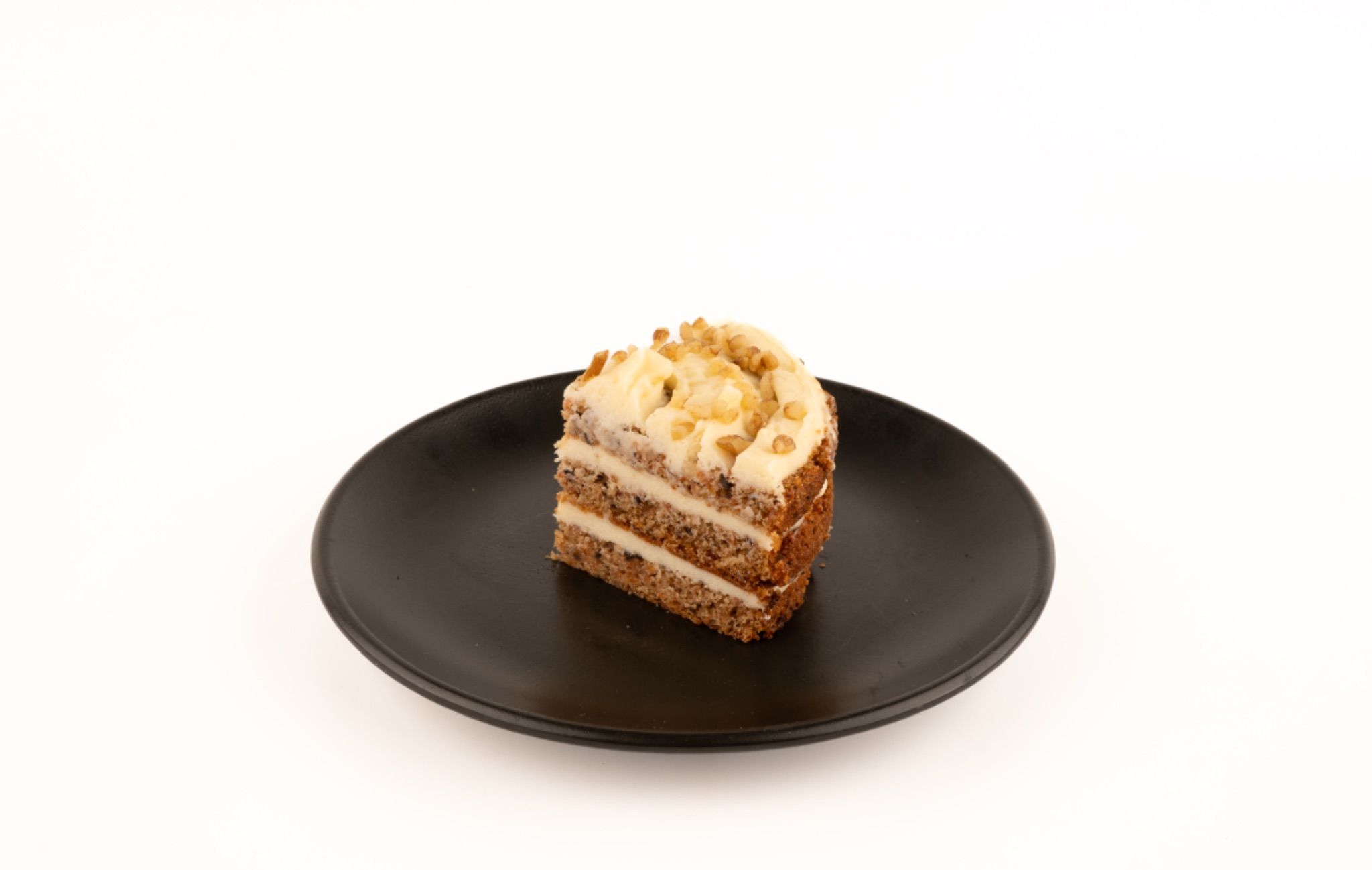 Baharatlarla zenginleştirilmiş cevizli havuçlu kek, yumuşak dokusu ve üzerindeki krema ile dengeli bir lezzet sunar.